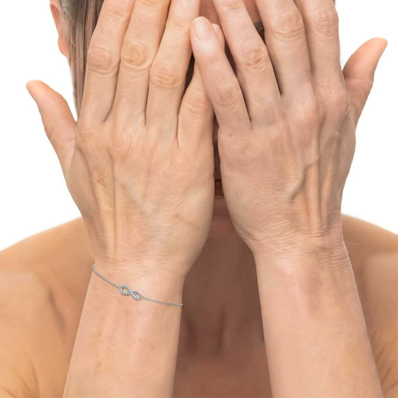 Bracciale in acciaio con catena cutting cross con al centro un infinito con cubic zirconia bianchi. Vicino al moschettone si trova una tag ovale con scritta "SPARKLE forever" su un lato e il logo Marlù sull'altro lato. Lunghezza totale 19 cm regolabile tramite cursore. Cubic zirconia bianco presente all' estremità. Materiali: acciaio, cubic zirconia